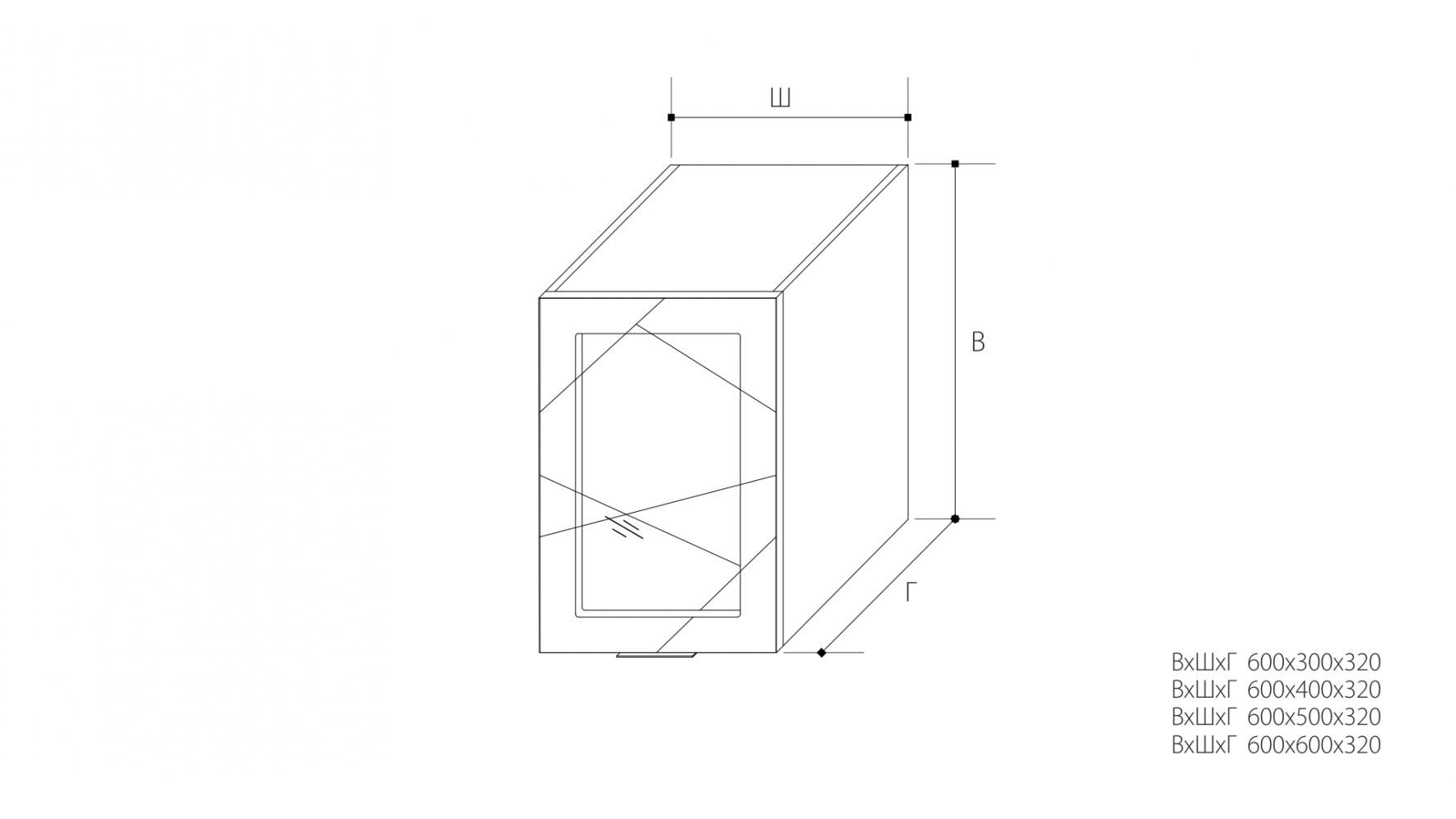 ВхШхГ: 600х600х320 мм.